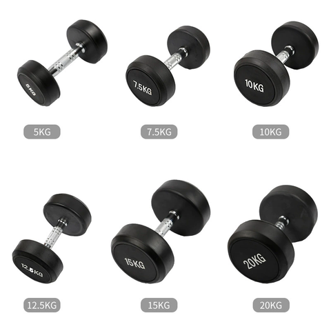 معدات صالة ألعاب رياضية مجموعة دمبلز ودمبلز مطاطي برأس دائري مع شعار للياقة البدنية وبناء الأجسام 50 كجم 5 رطل